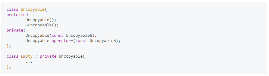 그 클래스를 복사방지를 하고싶은 클래스에서 private로 상속 받는 방식으로 사용한다.