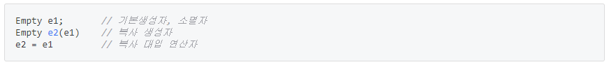 | 1 .참조자를 데이터 멤버로 가지고 있는 경우 2. 상수 객체를 데이터 멤버로 가지는 경우 |
