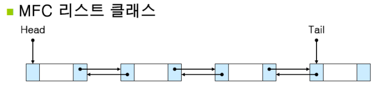 MFC의 리스트 클래스들은 모두 양방향 연결 리스트로 Head와 Tail을 모두 가지고 있다.