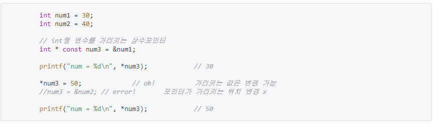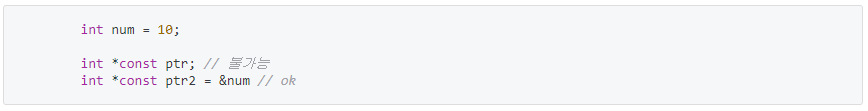 - cf) const 포인터는 선언과 동시에 초기화 해줘야 한다.